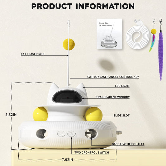 4 in 1 Interactive Cat Toys for Indoor Cats,Cat Laser Toys with 360°Rotation, Interactive Exercise Play Kitten Toy,Automatic Cat Wand Toys,Track Balls,Indoor Exercise Cat Kicker with USB Rechargeable